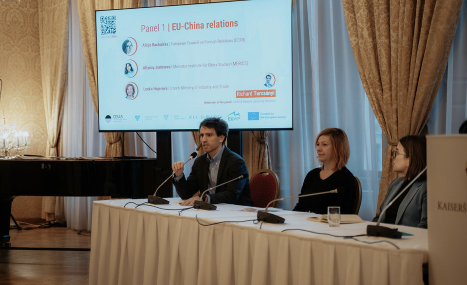 Photo 2: Panel 1 on Europe-China relations, moderated by Richard Turcsanyi (Palacký University Olomouc), panelists: Alicja Bachulska (ECFR), Altynay Junusova, (MERICS), and Lenka Hojerová (Czech Ministry of Industry and Trade)